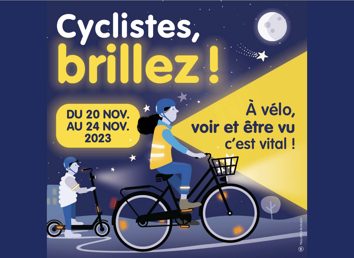 Cyclistes Brillez Publié le dimanche 16 novembre 2025 à 10h54 Cette année encore, Vive Le Vélo sera présent chaque fin de journée de la semaine prochaine, sur 5 points en périphérie de La Rochelle : Aytré, lycée Vieljeux, Périgny, Lagord, Puilboreau : Cyclistes brillez 2023